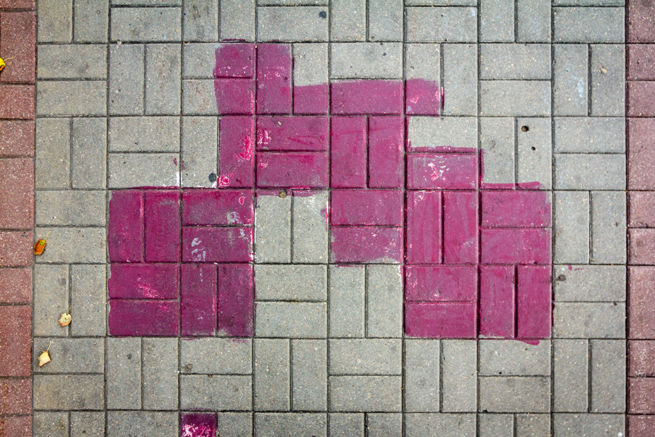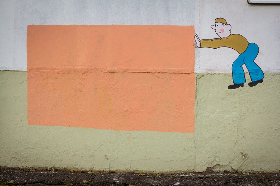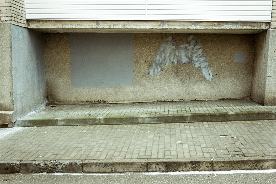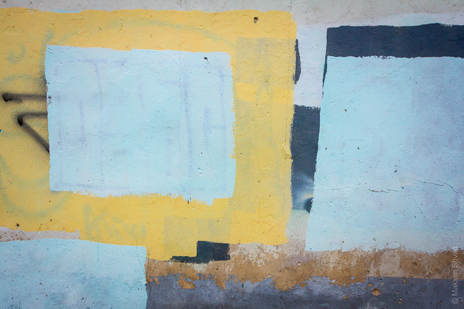 З часам у сваім захапленні я пачаў шукаць новыя формы. Хацелася рабіць нешта з іншым кірункам мыслення. Больш фармальнае і абстрактнае – не звязанае з жыццём і чаканнем нейкага «вырашальнага моманту». Так я звярнуў увагу на рознакаляровыя фігуры на сценах, якімі камунальныя службы зафарбоўваюць графіці, тэгі ды іншы стрыт-арт.