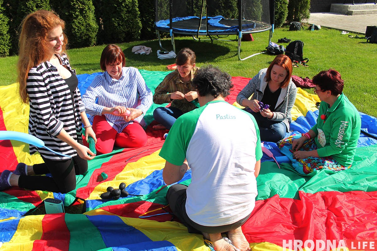 Гродзенкі з 13 па 17 мая спрабавалі асвоіць “азбуку” бальнічнага клоўна. Па-першае, трэба аб’яднаць калектыў. Вялікі акцэнт італьянцы рабілі на тым, каб згуртаваць дзяўчат, якія пасля будуць працаваць разам. Але галоўнае – гэта навучыць людзей быць больш чуллівымі і слухаць не вушамі, а сэрцам. Па-другое, дзяўчаты спрабавалі знайсці свой персанаж, паходку і падабраць касцюм. Важна, каб гэта глядзелася натуральна і чалавек адчуваў сябе камфортна ў вобразе. Па-трэцяе, дзяўчаты асвойвалі інструменты клоўнаў: фокусы, жангліраванне, імправізацыя. Цягам апошніх двух дзён навучання яны прайшлі “практыку” ў бальніцах.