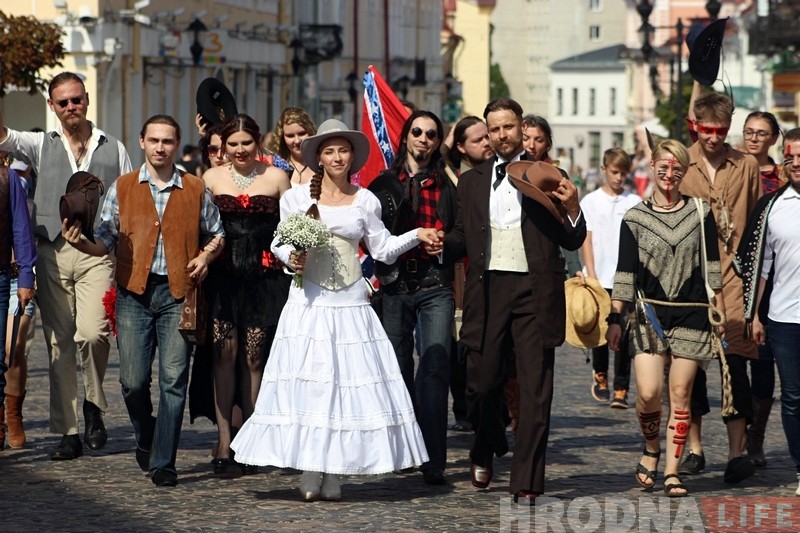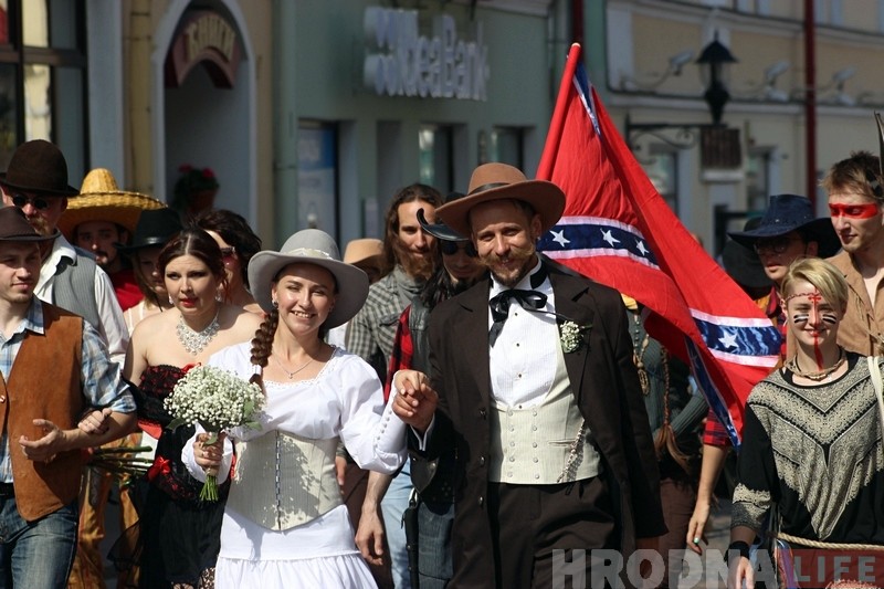 Біл Тонсi быў салдатам паўднёўцаў, самазваным палкоўнікам канфедэратаў, рабаўніком цягнікоў і банкаў ды доўгі час хаваўся ад уладаў. Але калі сустрэў мексіканскую бандытку Марту Акудамадэра, спыніўся. Маладыя вырашылі стварыць сям’ю і пачаць жыццё з чыстага ліста. Такі быў сцэнар вяселля ў гродзенцаў Васіля і Таццяны, якія 11 жніўня адсвяткавалі вяселле ў стылі Дзікага Захаду.