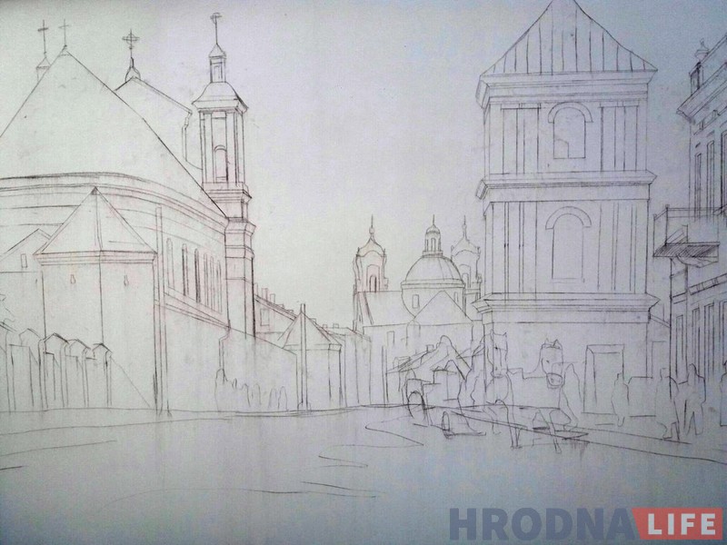 За аснову роспісу Аляксей узяў фатаграфіі Гродна пачатку XX стагоддзя. Гэта будзе першая публічная работа мастака. Да гэтага моманту работы Аляксея былі толькі ў прыватных калекцыях.