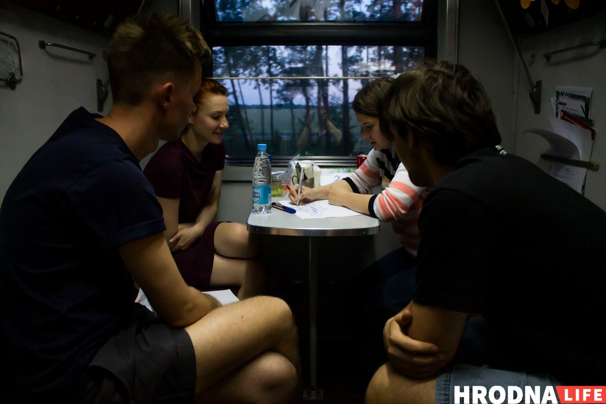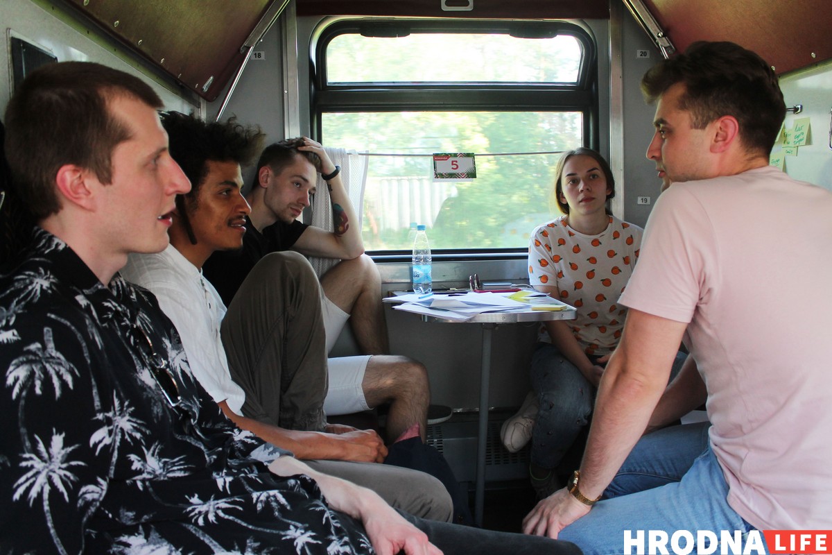 Калі выбіралі пляцоўку для пятага Крэатона, прагучала прапанова правесці яго ў цягніку. Аказалася, Мінск-Гродна-Мінск – адзіны цягнік са злучэннем з абласнымі цэнтрамі, які ўжо праз гадзіну едзе назад. Да таго ж гэты самы павольны цягнік які толькі ўдалося знайсці. Выкупіць вагон дапамаглі партнеры. У 15.30 у суботу ўдзельнікі селі на цягнік і ў 7.20 нядзелі вярнуліся ў сталіцу.