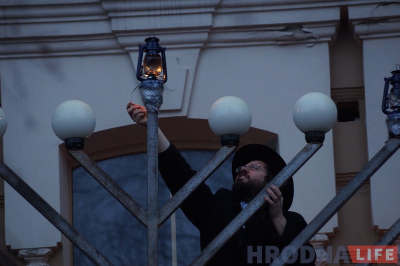 Гродзенскі рабін Іцхак Кофман і старшыня iўдзейскай абшчыны Барыс Квяткоўскі напачатку сказалі прамову i запалілі галоўныя свечкі горада на сінагозе. Дапамагаў ім у гэтым уладальнік “ЗОВ-мэбля” Алег Зухавiцкi.