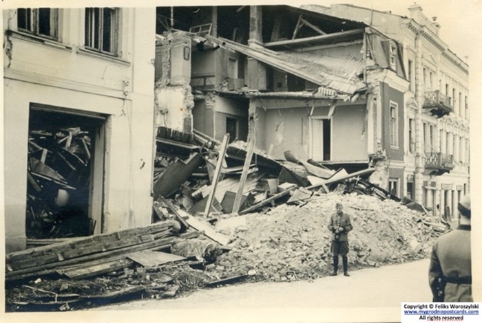 «Пачаўся абстрэл горада, дзесьцi ў 4 раніцы, мне здаецца стралялі дальнабойнымі прыладамі. Мы ўсе ў той момант спалі і не маглі ўявіць, што нас чакае наперадзе. Калі ўпалі першыя бомбы, у людзей была паніка. Я памятаю, што тады бомбы разбурылі дамы на сучасных вуліцах 1-га Мая, Лермантава, пацярпеў і дах Фары Вітаўта. Шмат было разбураных будынкаў, загінулых і параненых людзей. Немцы выдатна ведалі, дзе і што ў нас у горадзе было размешчана. Яны бамбілі ў асноўным вулачкі, дзе жыла яўрэйская бедната».