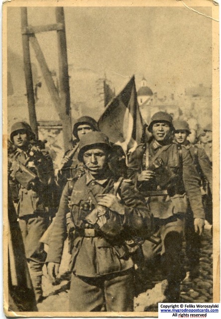 Разам з немцамі ў Гродне сталі з’яўляцца і іспанскія салдаты, многія з іх жылі ў кватэрах у гродзенцаў. Але калі пачалася адпраўка на фронт, многія сталі ўцякаць.