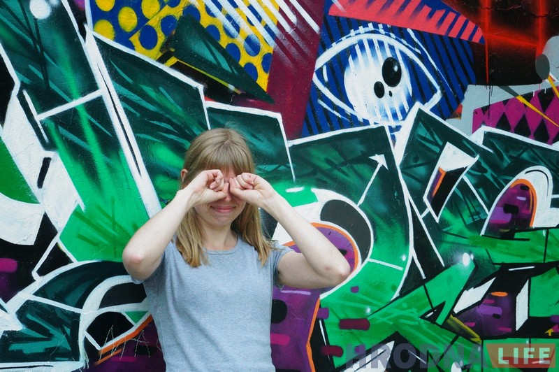 Гэта таксама выява са сцяны ў Каложскім парку, каля палацу творчасці дзяцей і моладзі. Гэта графіці найперш цягне на сябе ўвагу, бо пазірае на гледача шырока расплюшчанымі вачыма.