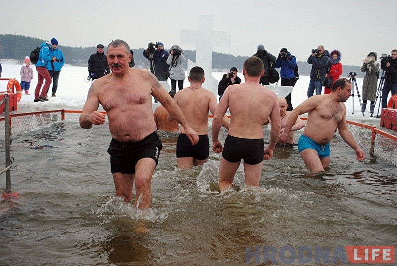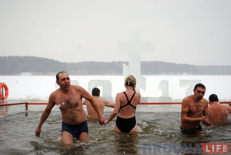 Сотни жителей Гродно приняли участие в традиционном праздновании Крещения Господня 19 января на Юбилейном озере. В этом году гродненцам, которые не побоялись ледяной воды, предлагали бесплатную баню, горячий чай и солдатскую кашу.