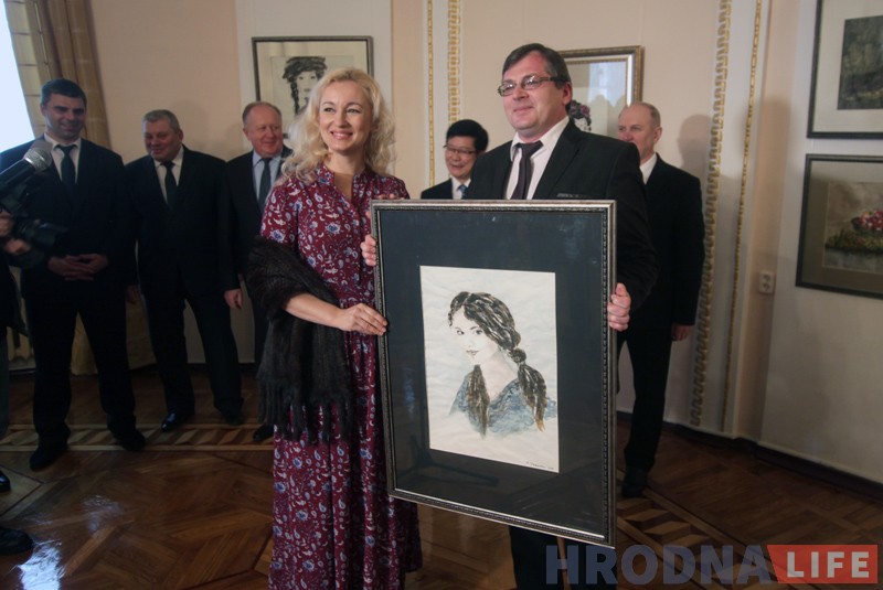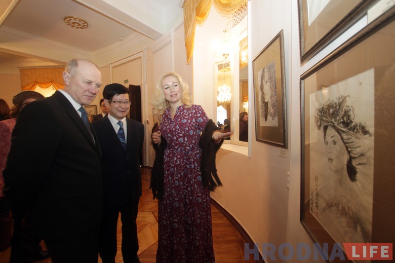 После дипломаты переместились в Новый Замок, где в овальном зале приняли участие в открытии выставки Марины Эльяшевич, работающая в стиле китайской традиционной живописи.