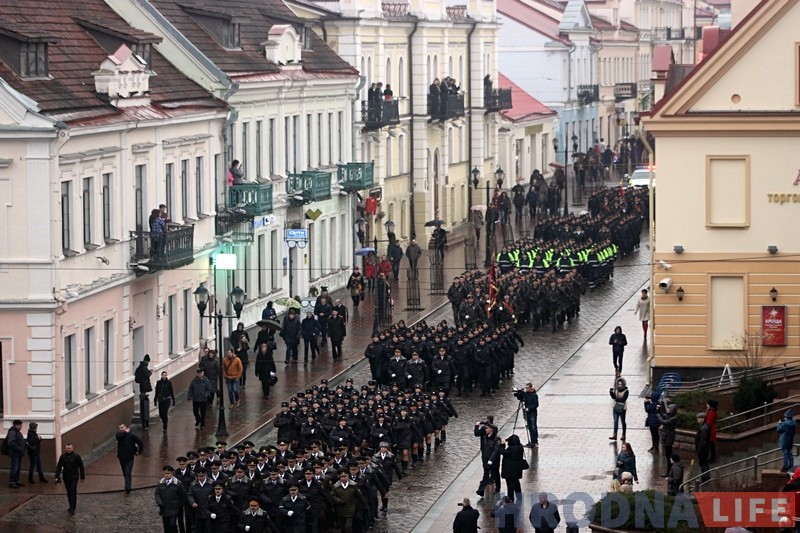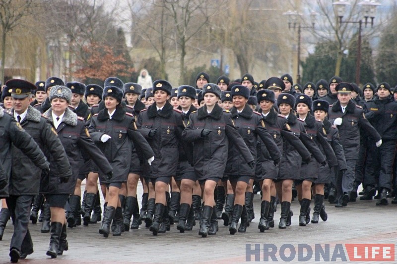 Шествие милиционеров по улицам Гродно уже стало традицией для города. В этом году колонну сотрудников решили разнообразить ветеранами, женщинами и кадетами.