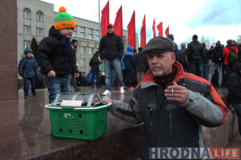 Житель Гродно Валерий Васильевич принес на Марш нетунеядцев 15 марта кота в переноске. «А что, денег он за содержание не платит, значит, тунеядец», — говорит мужчина. Кот спокойно реагировал на громкие выкрики и привлекал внимание детей.