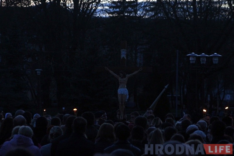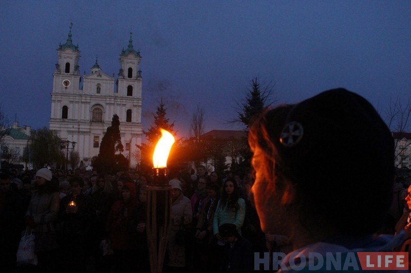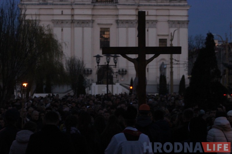 Накануне Вербного воскресенья в субботу 8 апреля сотни католиков после окончания вечернего богослужения в Кафедральном соборе прошли Крестный путь по центру Гродно. Молодежь со всех приходов города по очереди несла крест, пела и читала фрагменты Евангелия и собственные размышления.