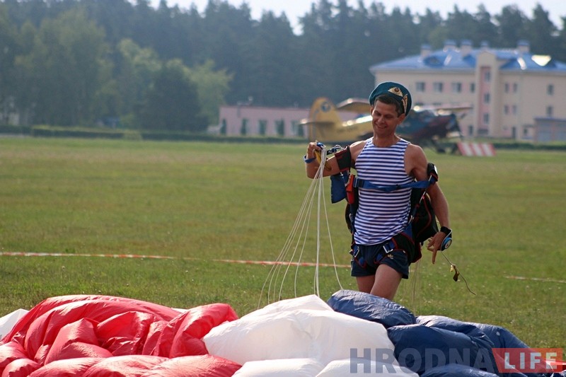 Празднование Дня ВДВ в Гродно началось у Юбилейного озера. В Гродненском аэроклубе десантники и спортсмены совершили по несколько прыжков с парашютом.