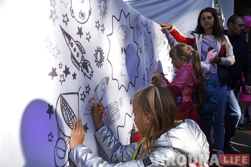 Гостей праздника ждали ростовые куклы-бонстики, мультики, песни и танцы. Можно было порисовать? сделать бонстик-селфи или написать поздравления для именинников-бонстиков.