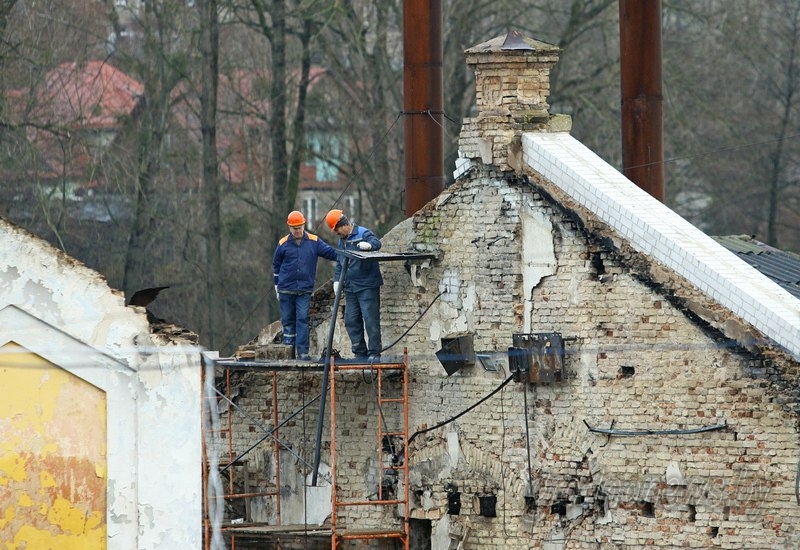 Сейчас силами УЖРЭП Ленинского района восстановлено энергоснабжение зданий, выставлена охрана. Его бригада строителей приступила к работам, которые идут ускоренными темпами. Кроме кирпичной кладки изготавливаются элементы кровли. Новая крыша будет фальцевой металлической.