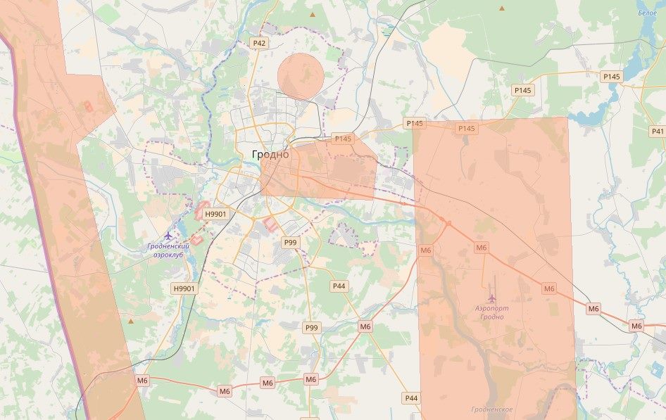 В Гродно использовать авиамодели запрещено практически от Нового замка, через центр города и далее примерно до 20 километров в направлении Минска по трассе М6. Запрещены полеты и в районе Гродненской ГЭС, аэропортом, над воинскими частями, военными полигонами, госпиталем по улице Дзержинского и Гродненской пограничной группой на улице Белуша. Самая большая зона, запрещенная для полетов, — приграничная территория.