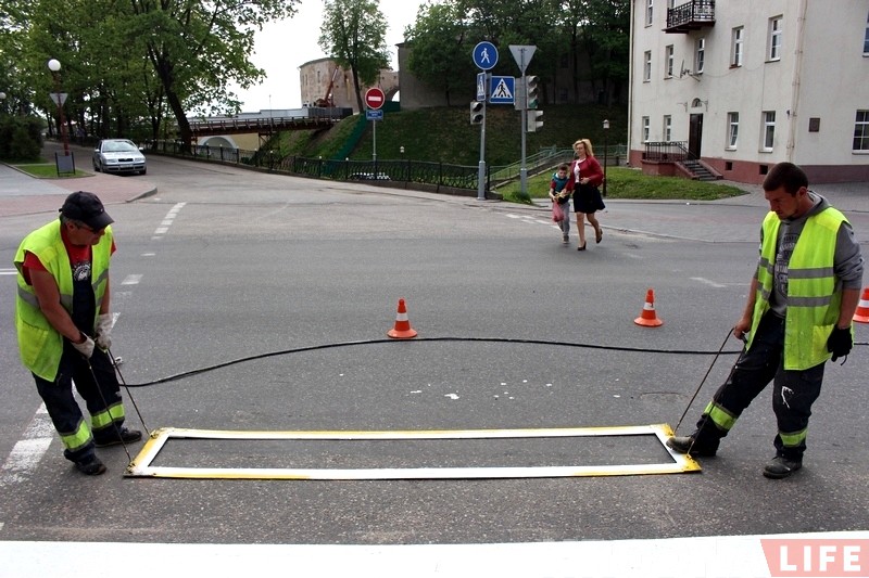 Необычную «зебру» уже можно увидеть возле вокзалов, на улицах Троицкой и Замковой.