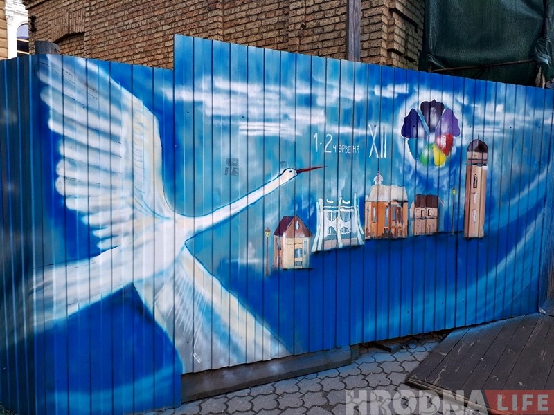 Меньше двух недель остается до Фестиваля национальных культур. Городские службы вовсю готовят Гродно к праздничным мероприятиям — красятся дома, ремонтируют дороги и даже украшают строительные ограждения. Увидеть красиво отделанную ограду можно, например, около синагоги.