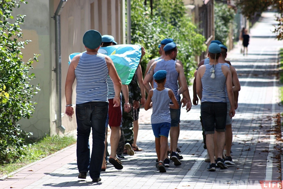 У мемориала воинам-интернационалистам десантники возложили цветы и дальше колонна из двадцати человек направилась в центр города на традиционные гуляния. Там некоторые последовали традиции, которую не все одобряют — искупались в фонтанах. Гуляния в городе будут продолжаться до позднего вечера.