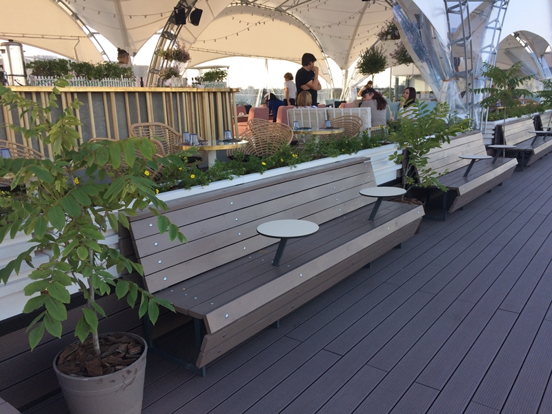 Территория смотровой площадки разделена на зону отдыха и территорию для прогулок. В центре обзорной площадки расположилось новое лаунж-кафе на 100 мест под названием «Крыша мира». Оно располагается на возвышенной террасе под навесом-куполом, занимает площадь 350 квадратных метров. Подобное кафе на крыше есть только в Минске, среди областных центров Гродно – единственный может похвастаться таким заведением.