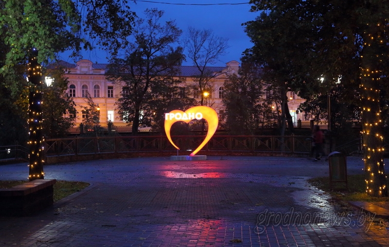 В прошлом году к 889-летию Гродно в парке Жилибера появилось огромное сердце и надпись о любви в адрес города. Изначально планировалось, что конструкция будет временной, но она так полюбилась гродненцам и гостям города и стала таким популярным фоном для фотографий, что теперь ландшафт парка и представить себе трудно без этой инсталляции, сообщает «Гродно Плюс».