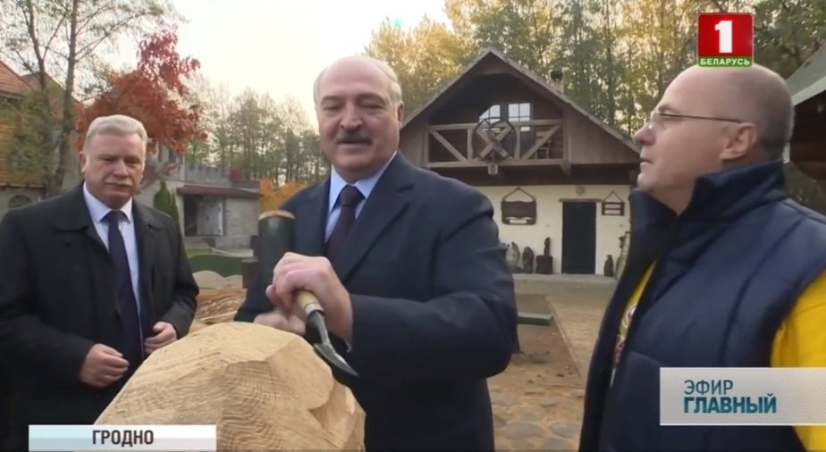 Интересным был выбор мастера. Он предложил Лукашенко поупражняться в вырезке древнего бога Белуна. «Это бог счастья и удачи у славян», — говорил ему Богдевич. Такие кадры были продемонстрированы на телеканале «Беларусь-1».