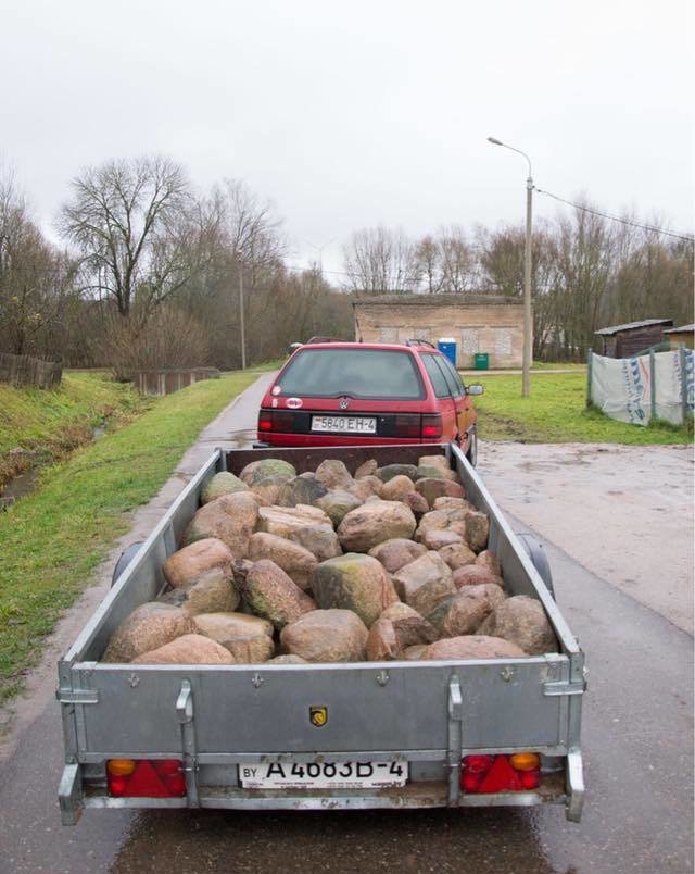 На призыв откликнулись многие. Светлана и Андрей Коласы, Дмитрий Карабач и Андрей Игнатик из Подороска (Волковысский район) привезли прицепчик валунов своей машиной.