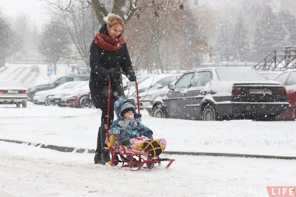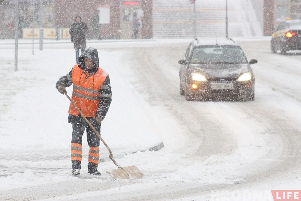 Первый сильный снегопад нынешней зимы накрыл Гродно 7 декабря. Коммунальные службы прилагают все силы, чтобы расчистить дороги и дворы от снега.