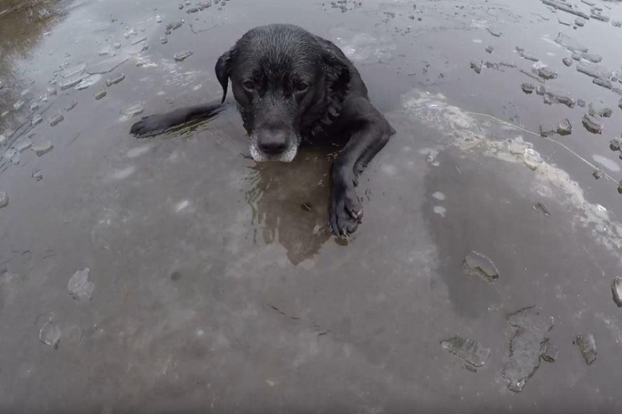 По приезду спасатели увидели, как уставшее животное из последних сил барахтается в воде на середине реки. Выбраться на берег самостоятельно оно не могло. Водолаз-спасатель в гидрокомбинезоне начал движение ползком по непрочному льду в сторону собаки, но испуганное животное никак не давалось в руки, отплывало в противоположную сторону.