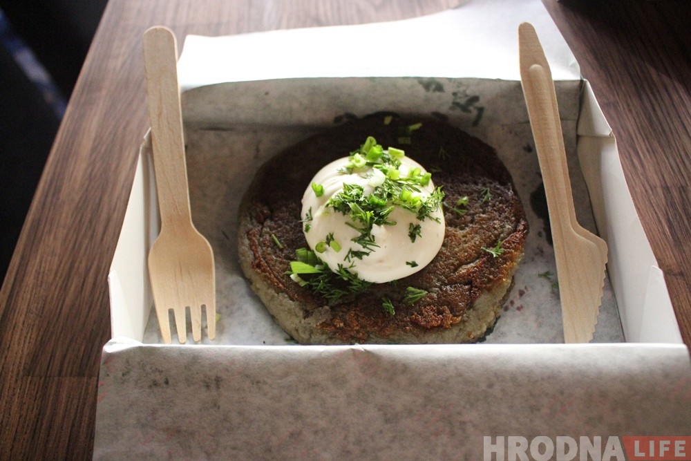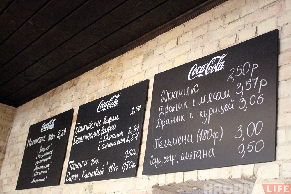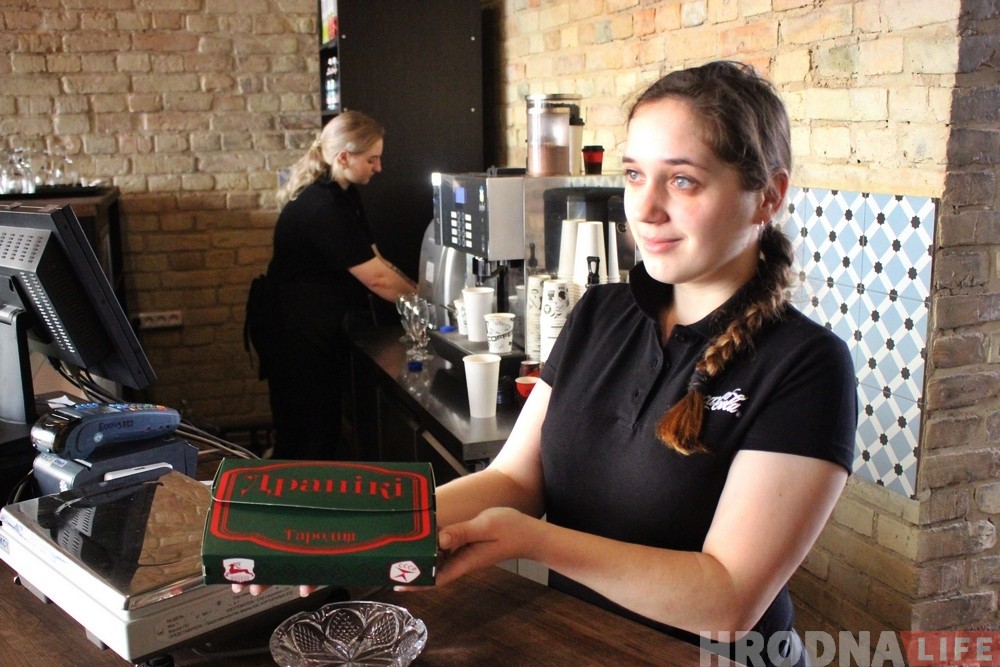 «Мы будем продавать традиционную белорусскую кухню, — рассказывает заведующая кафе Татьяна Кульбей. — Основной упор делаем на драники, постараемся их сделать лучшими в городе. Готовим их по нашим секретным технологиям, как обычные, так и с курицей и говядиной. Их особенность в том, что все блюда подаются с пылу жару — будем готовить для каждого клиента, а не просто разогревать. Помимо этого мы можем предложить посетителям пельмени ручной лепки, шесть видов собственного производства мороженого и бельгийские вафли.