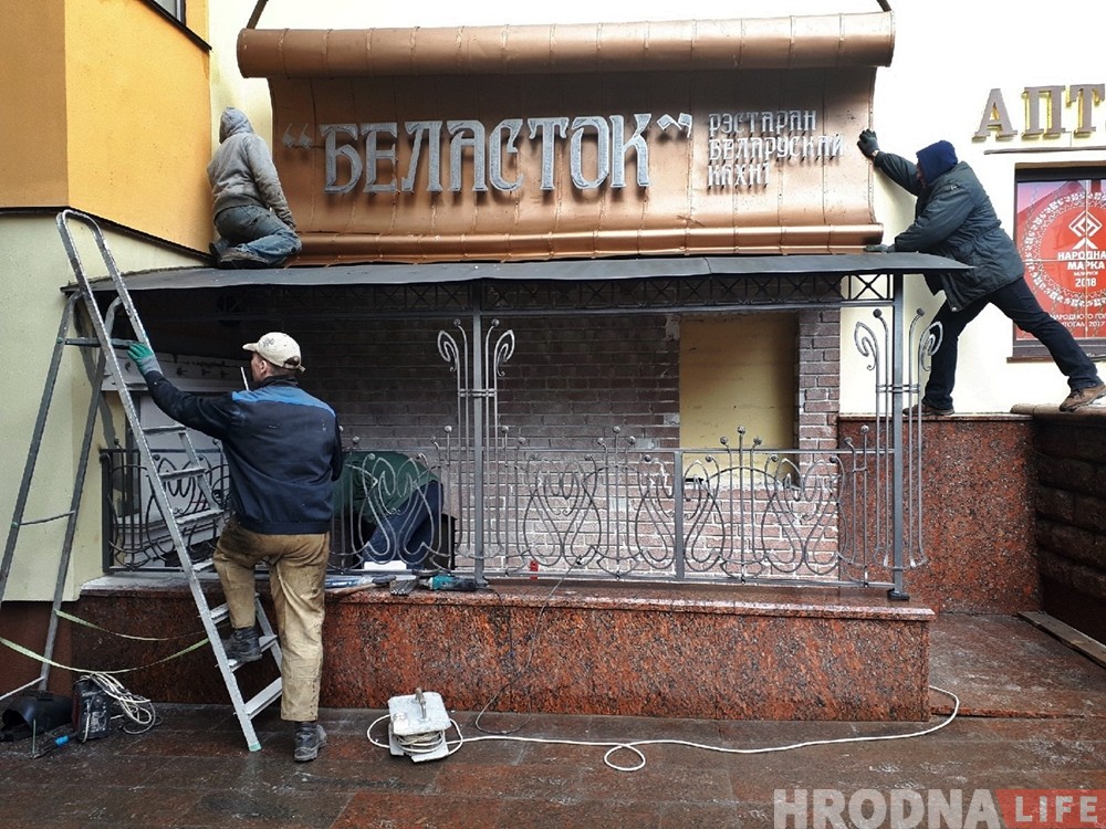 У входа в будущий ресторан «Белосток» 4 марта повесили вывеску. Планируется, что заведение с белорусской кухней откроется в апреле на цокольном этаже бизнес-центра «На Виленской».