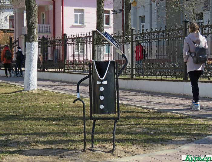 Теперь урны, которые вызвали так много обсуждений в Гродно, есть и в Витебске. Читательница «Витебского курьера» пишет: «Живу возле Ветакадемии, сегодня рано утром, по пути на работу обнаружила на улице на стороне Академии вот таких вот «джентльменов».