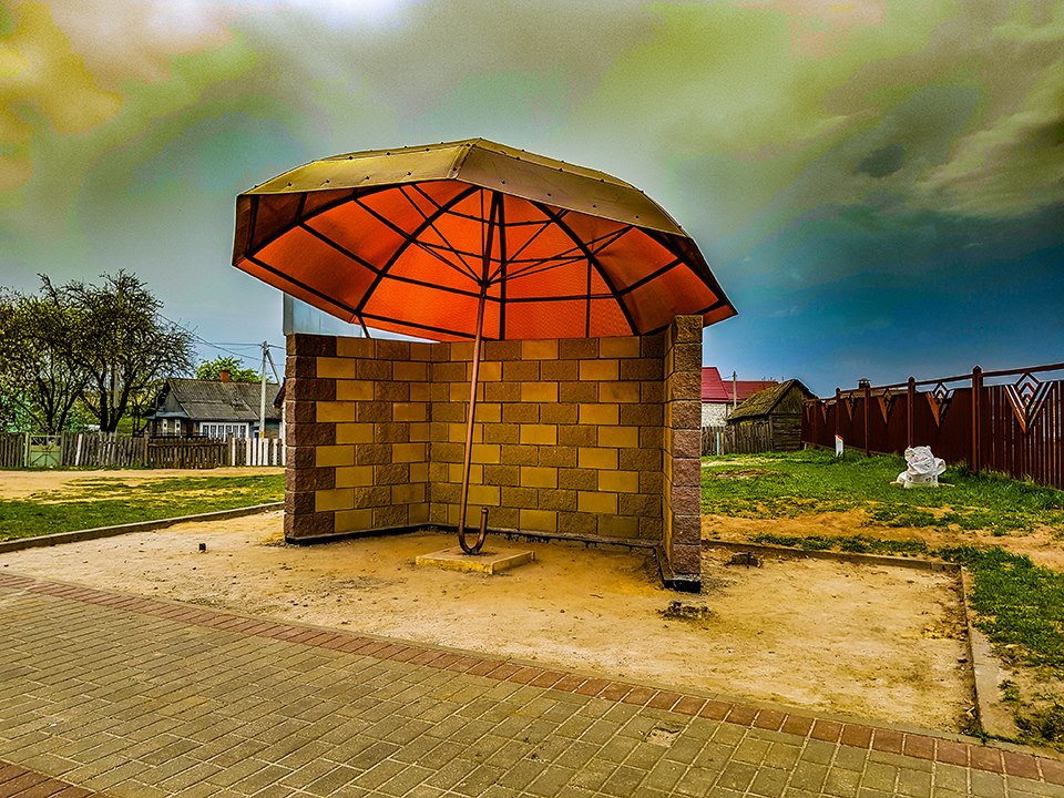Остановка общественного транспорта нестандартной конструкции появилась в Слониме. Она представляет из себя огромный зонт и пока не оборудован скамейкой. Об этом 27 апреля написала Газета Слонимская.