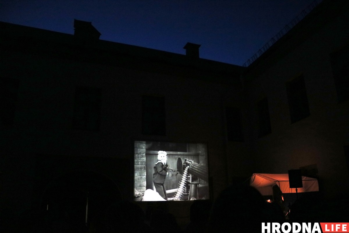 В Гродно 5 июля показали первый фильм программы «Кинемо» этого года. Белорусский фестиваль немого кино и живой музыки проходит уже седьмой раз, в Гродно — шестой. Старые черно-белые фильмы крутят под открытым небом под современную музыку в живом исполнении.