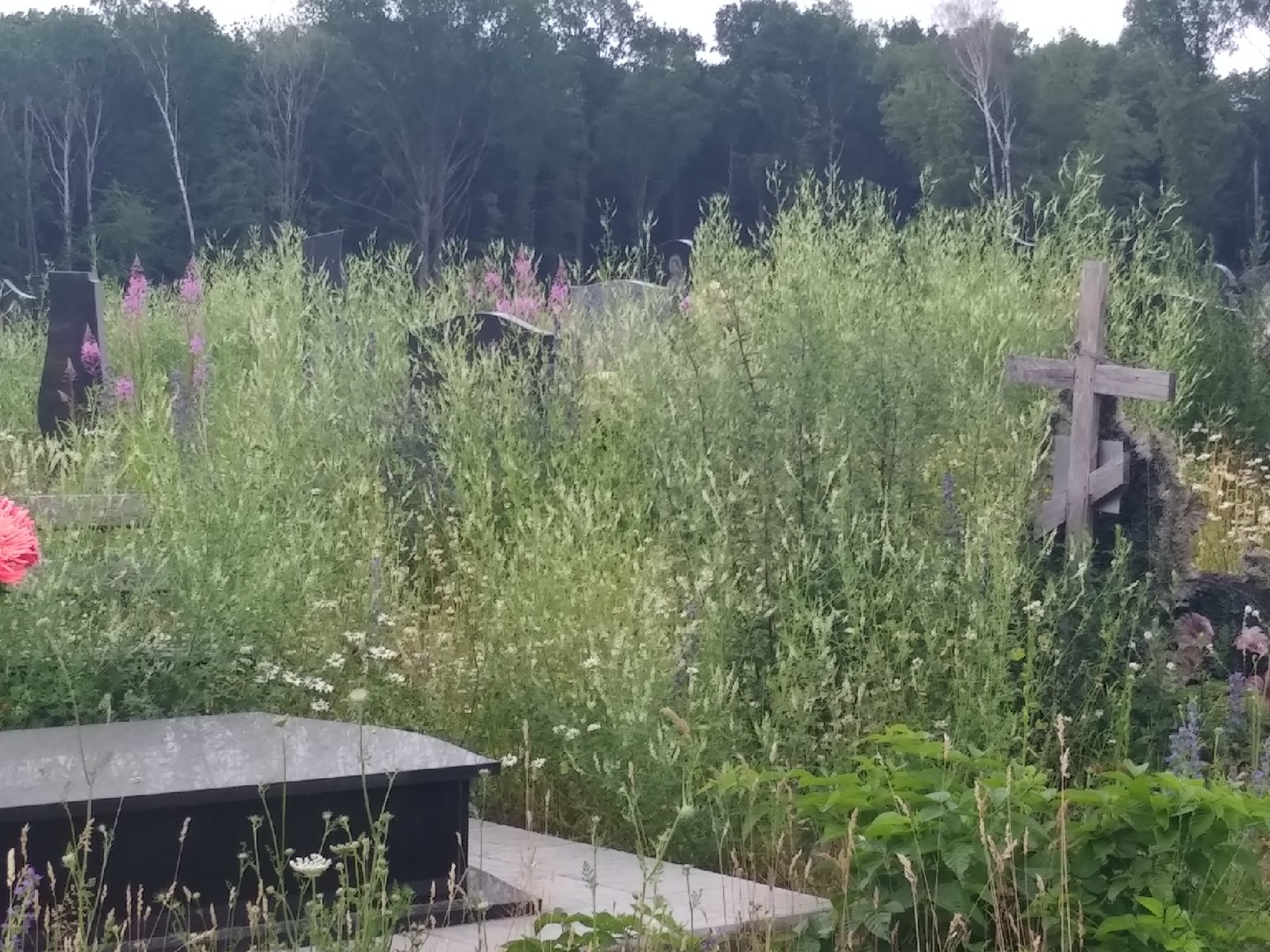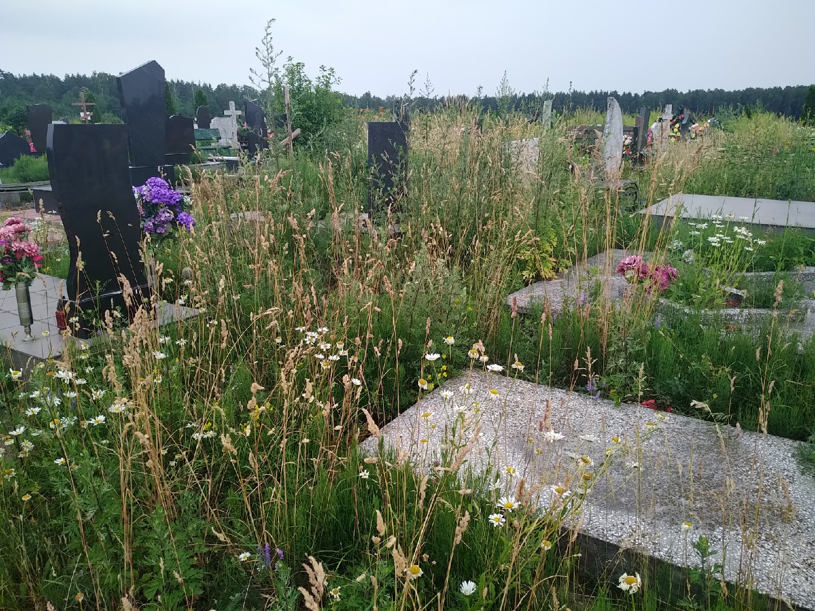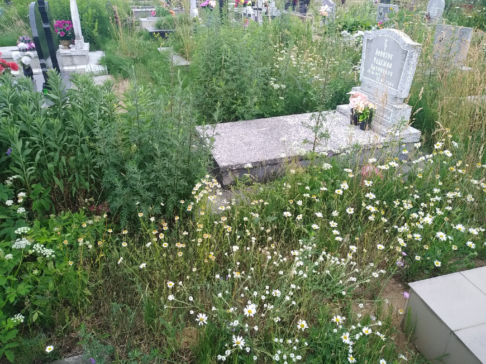 Анатолий говорит, что эта проблема возникает больше на старой части кладбища. На новых секторах другой грунт, и трава растет меньше.