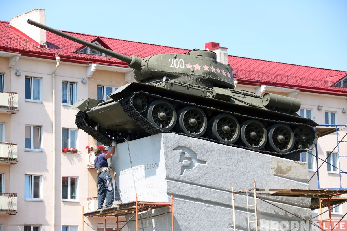 С начала августа проходит ремонт постамента и самого памятника-танка в центре Гродно. После этого на танке появится новая надпись.