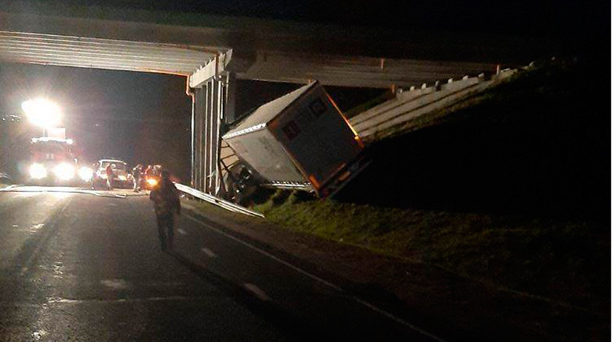 Авария произошла на автодороге Поречаны-Новогрудок-Несвиж вблизи деревни Селец. «Мужчина 1991 года рождения ехал на автопоезде MAN с полуприцепом в сторону польской границы. В районе развязки нужно было уходить вправо, но по непонятной причине водитель продолжил движение прямо. Машина ударилась об опору путепровода. Водитель погиб на месте. Два пассажира получили легкие травмы, их жизни ничего не угрожает», — сказал Евгений Дудко.