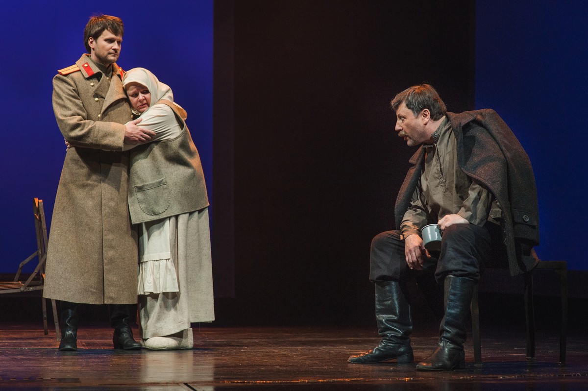 Спектакль «Дзве душы» поставлен по одноименной повести Максима Горецкого, которой также исполнилось 100 лет – она написана в 1919 году после Первой мировой войны. В 2016 году эта философская проза впервые была вынесена на театральную сцену режиссером Николаем Пинигиным.