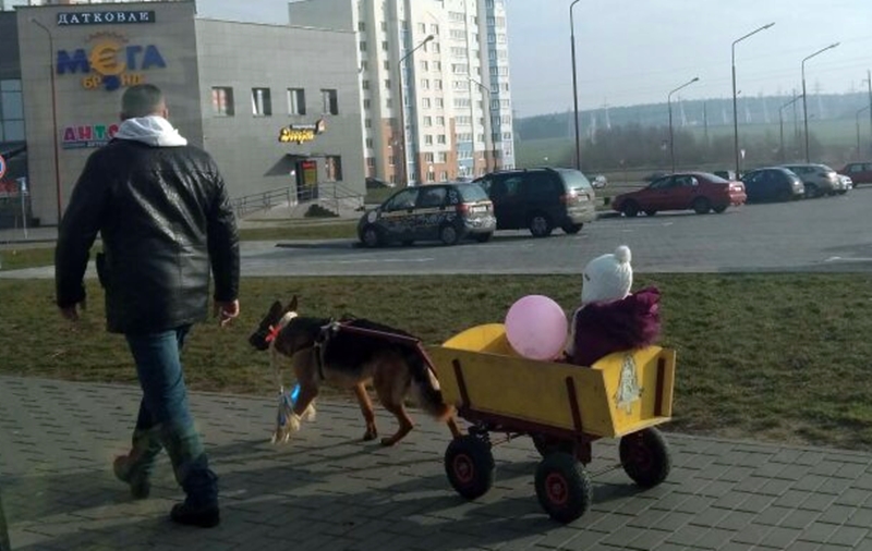 В группе «Очевидец Гродно» 28 января появилась фотография маленькой девочки в тележке, которую тянет собака. С подписью: «Все для своей принцессы».
