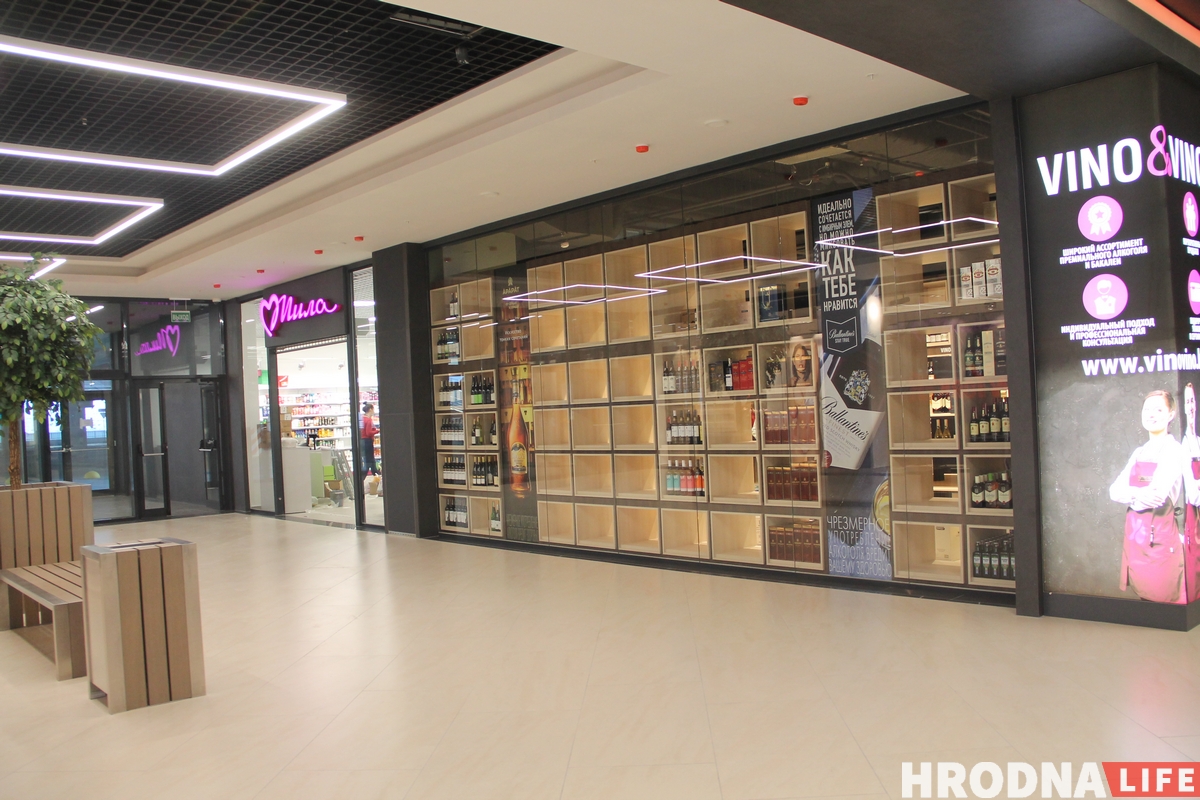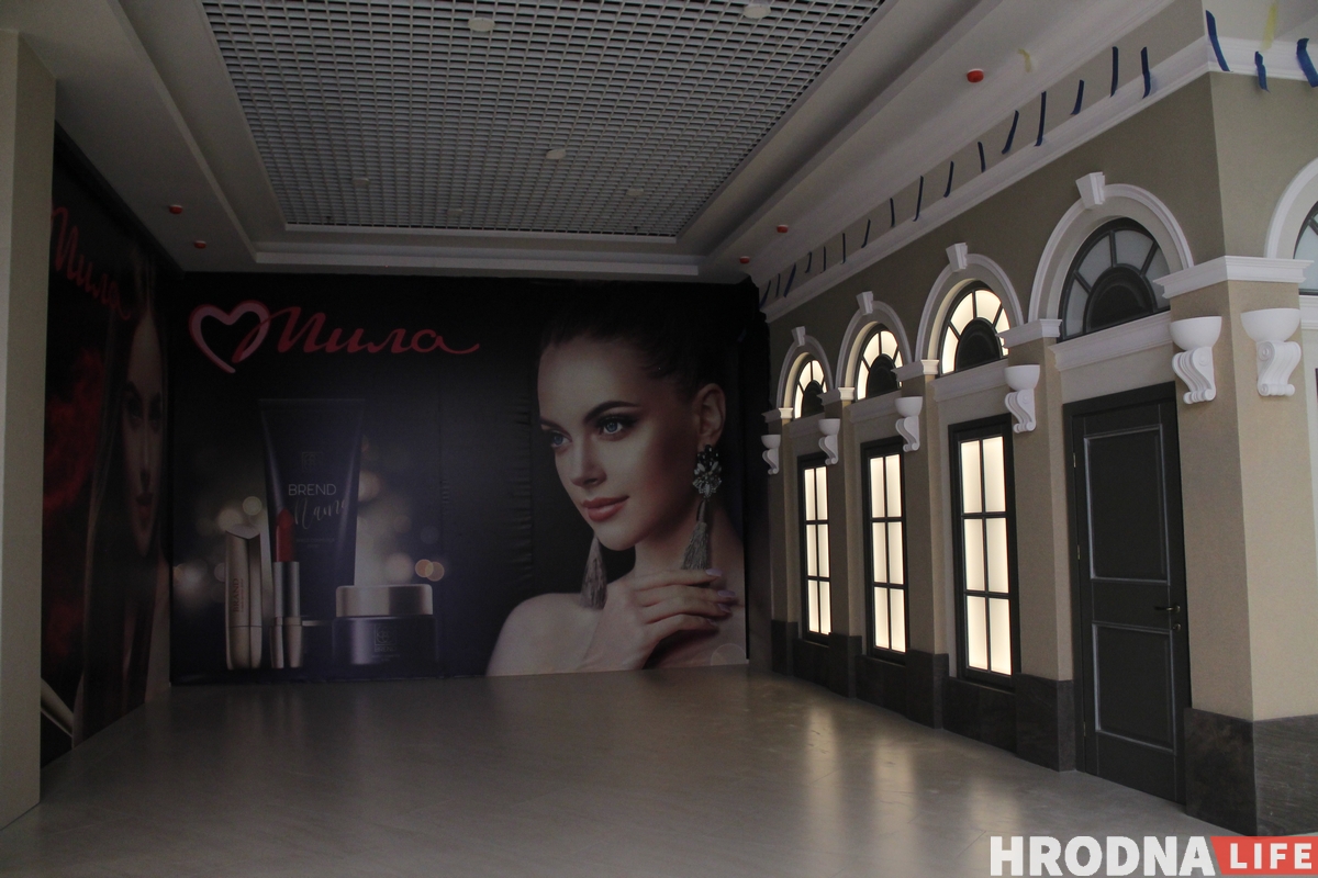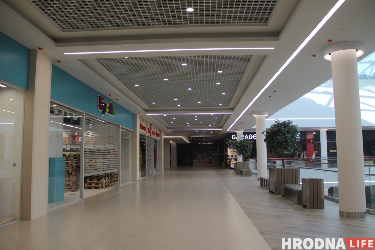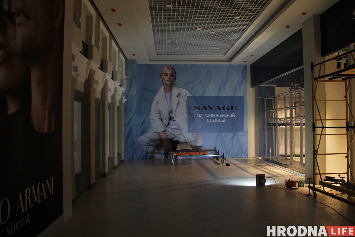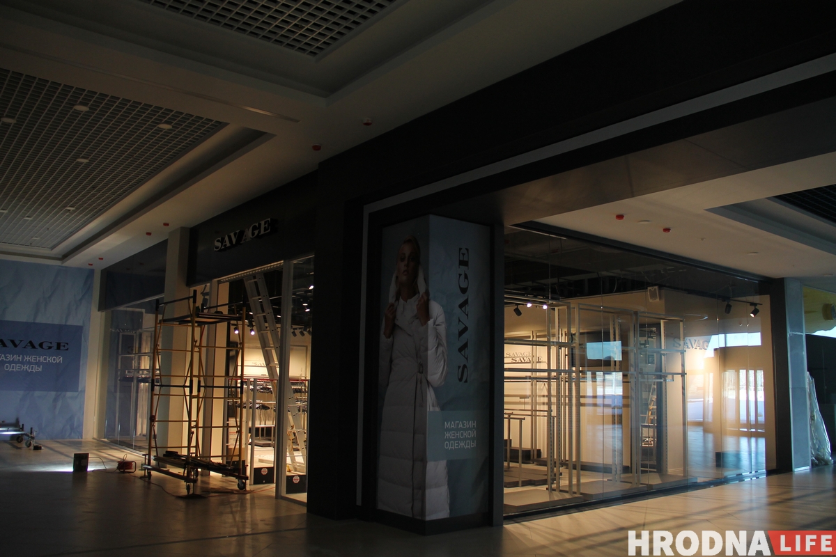 Пока не у всех брендов есть вывески, но они появятся в ближайшее время. Из представленных марок — Savage, NewYorker, Caprice, KEDDO, «Спортмастер», «Кравт» и «5 элемент». Среди детских магазинов также будет «Буслік Гнёздышко» с товарами для новорожденных. В целом будет 60 арендаторов, т.е. магазинов. На втором этаже будет расположен гипермаркет Green – первый в регионе. Он занимает почти 7 тыс. кв.м. арендной площади, 4,5 тыс. кв.м – торговый зал.