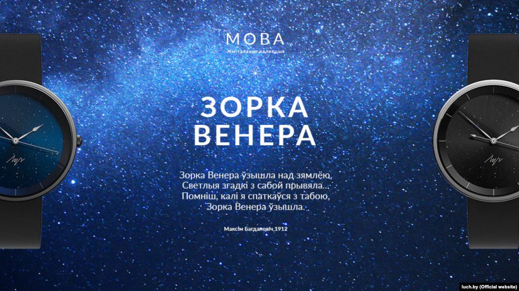 18 февраля Минский часовой завод «Луч» выпустил лимитированную коллекцию часов «Мова». Ее создание приурочено к Международному дню родного языка. В основу концепции часов легло стихотворение Максима Богдановича «Зорка Венера», пишет БЕЛТА.