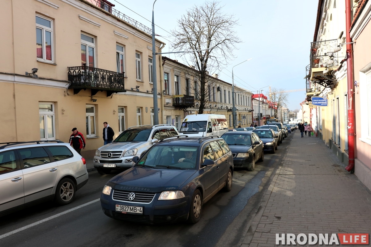 Утром 2 марта в центре Гродно образовались большие пробки из-за закрытия улицы Большой Троицкой и двух аварий возле Старого моста.