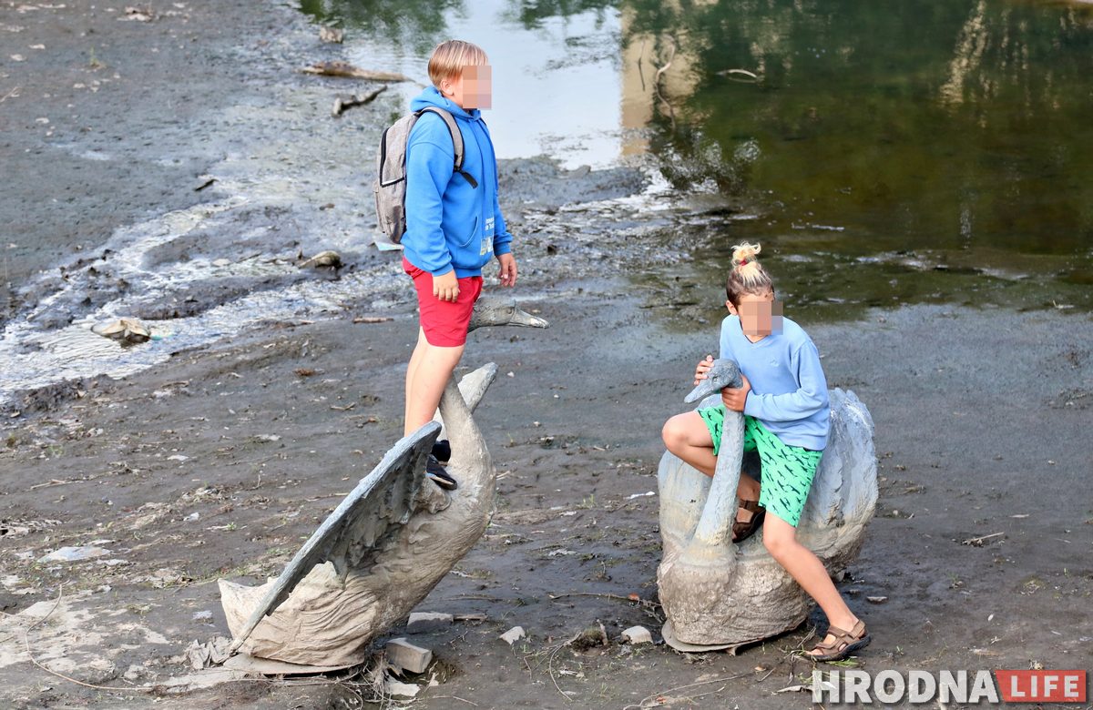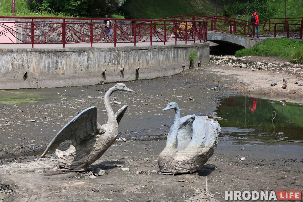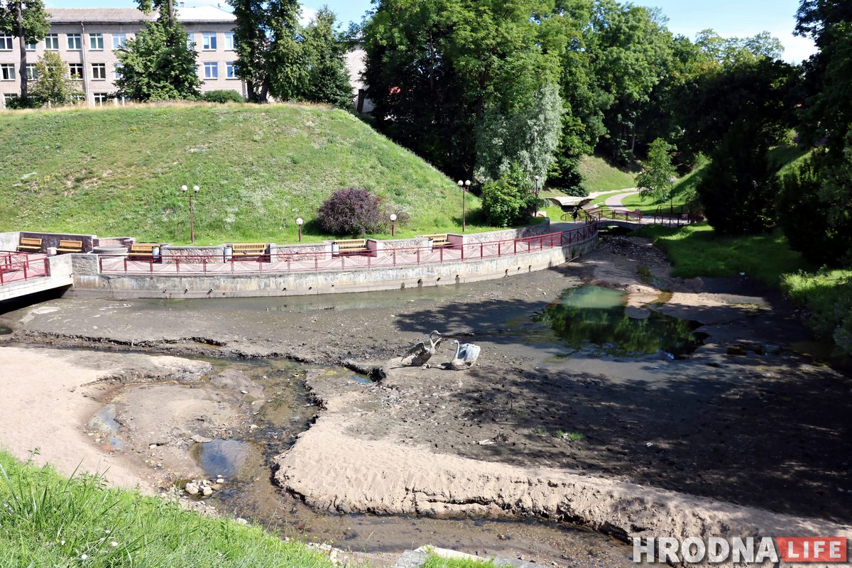 «Такого еще не было, чтобы вода практически полностью пропала в пруду. Мы стали искать проблему и обнаружили родник в районе Девятовки, который вел в город и питал пруд. Он очень мощный и течет оттуда чистейшая вода. Две недели назад в этом месте начался ремонт объездных путей на нефтебазу. Возможно, что-то перекрыли и вода в центр перестала поступать», — рассказал Hrodna.life Евгений Филимонов.