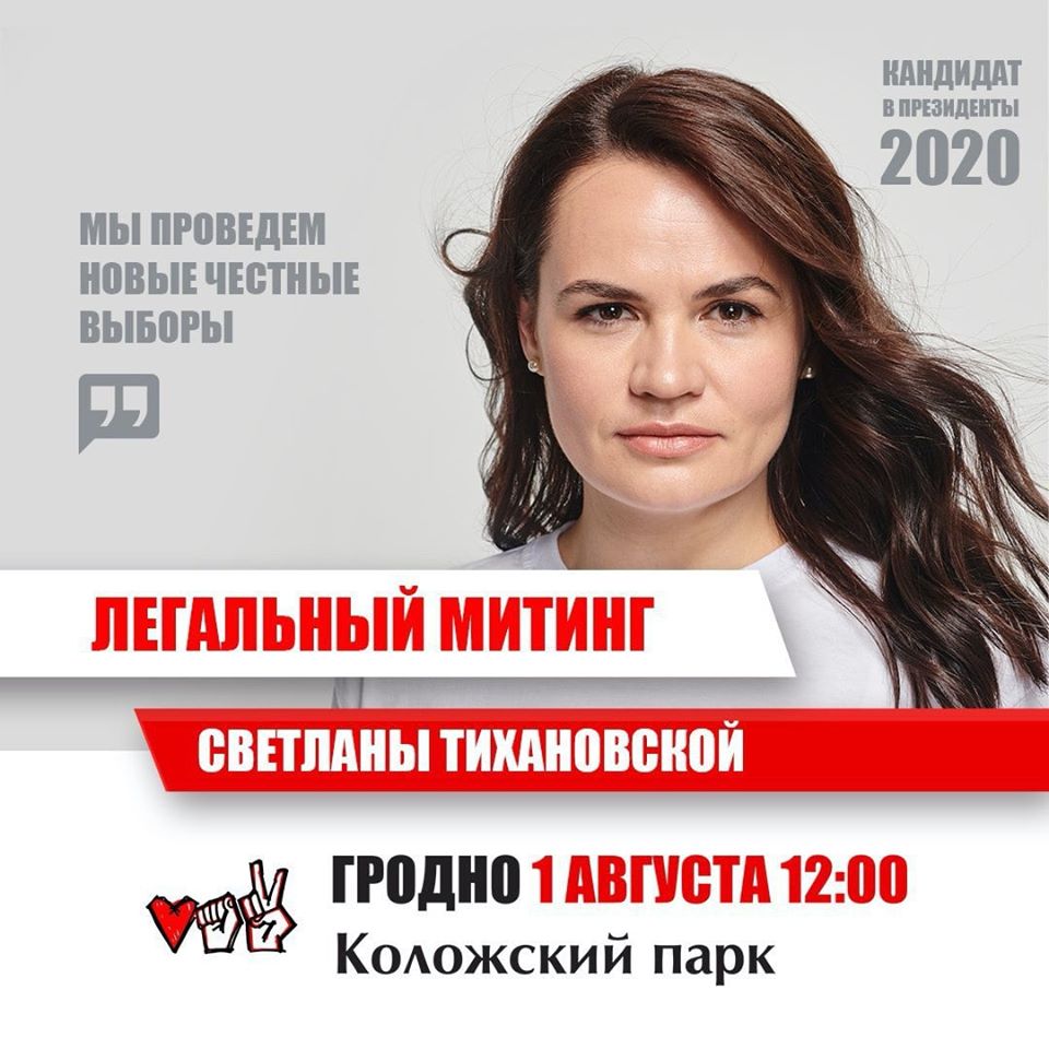 1 августа Светлана Тихановская проведет пикет в Гродно. Она готовит особенное обращение к гродненцам, которые присутствовали при задержании ее мужа — Сергея Тихановского. Об этом рассказали Hrodna.life 30 июля на онлайн-встрече Пресс-клуба с Объединенным штабом кандидата.