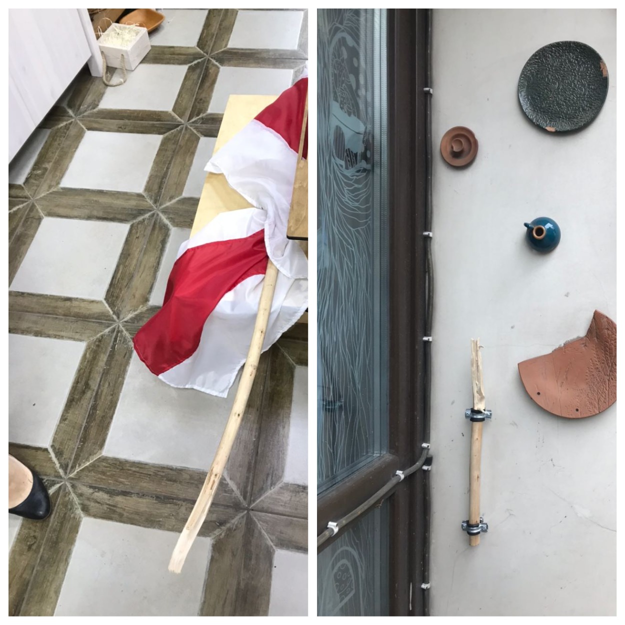 Около 14.00 28 августа владелец магазина «Цудоўня» Андрей Нестерович увидел, что двое незнакомых ему людей сломали древко, на котором висит бело-красно-белый флаг, и бросили его на землю. Он пошел за ними. Через 50 метров он догнал неизвестных и пригрозил им милицией.