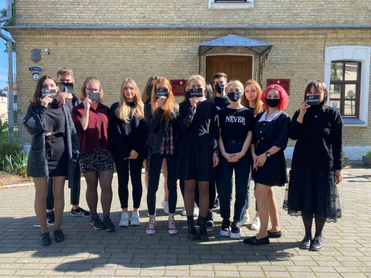 Студенты Гродненского государственного университета имени Янки Купалы 16 сентября снова вышли в поддержку репрессируемых студентов. Они сфотографировались с табличками «Всё запрещено». Об этом студенты сообщили в своем Telegram-канале.