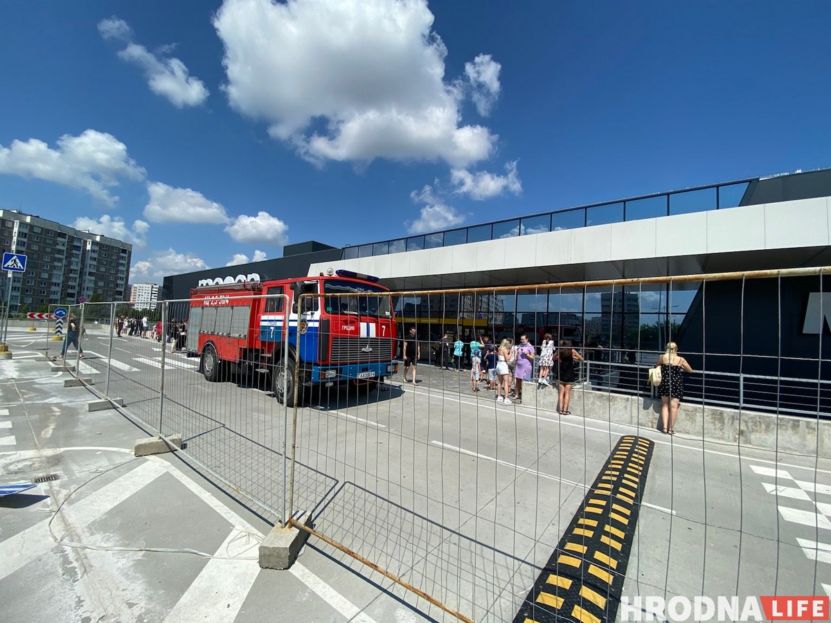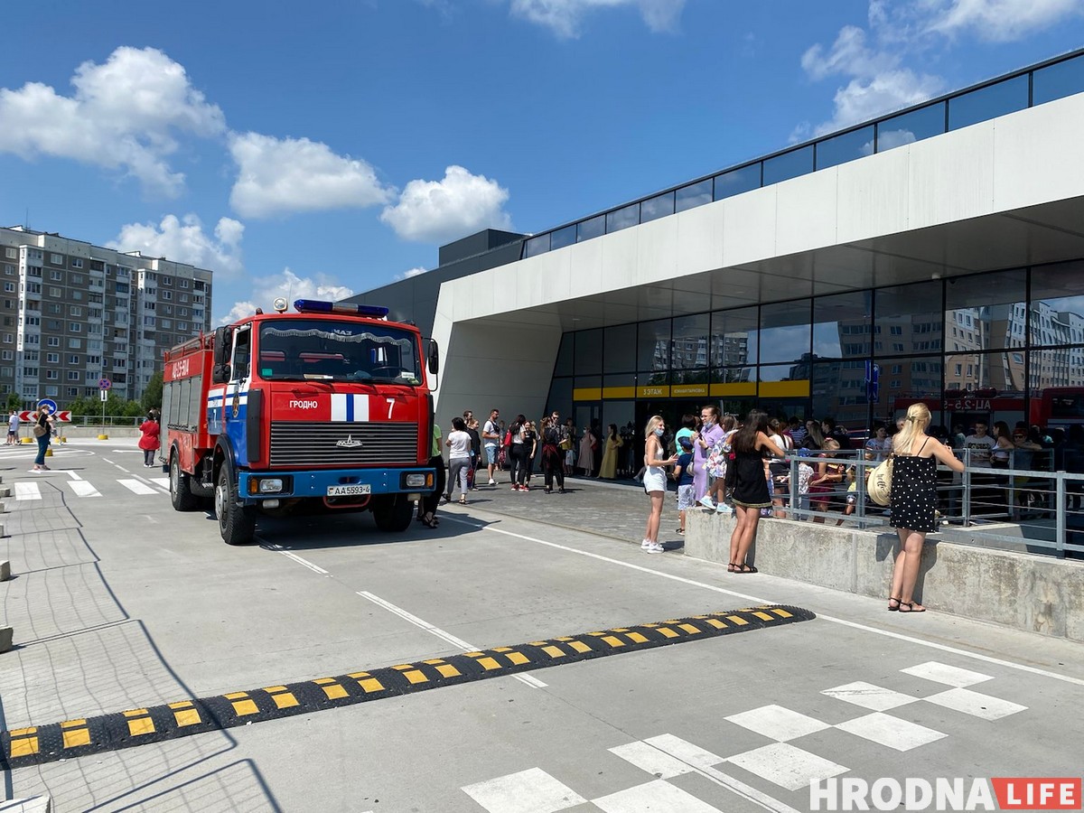 Около 12.30 8 июля всех посетителей попросили покинуть здание, приехали пожарные машины. «Одна стояла на третьем этаже и одна не заезжая на парковку», — рассказал Hrodna.life очевидец происходящего.