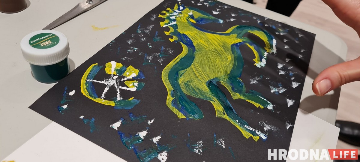 Паўдзельнічаць у майстар-класе і намаляваць уласнага каляднага коніка змаглі ўсе ўдзельнікі вернісажу. Для натхнення глядзелі выставу, а справіцца з маляваннем дапамаглі трафарэты, фарбы і бліскучкі. Паводле арганізатараў выставы, гэтыя малюнкі скарыстаюць, каб зрабіць віншавальныя паштоўкі. Частку з іх падпішуць для палітзняволеных беларусаў.