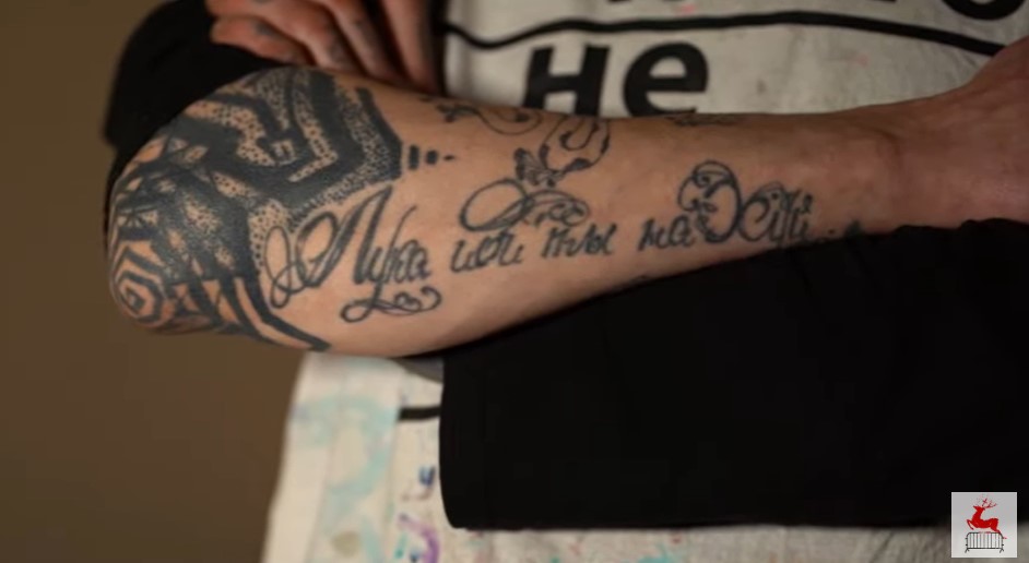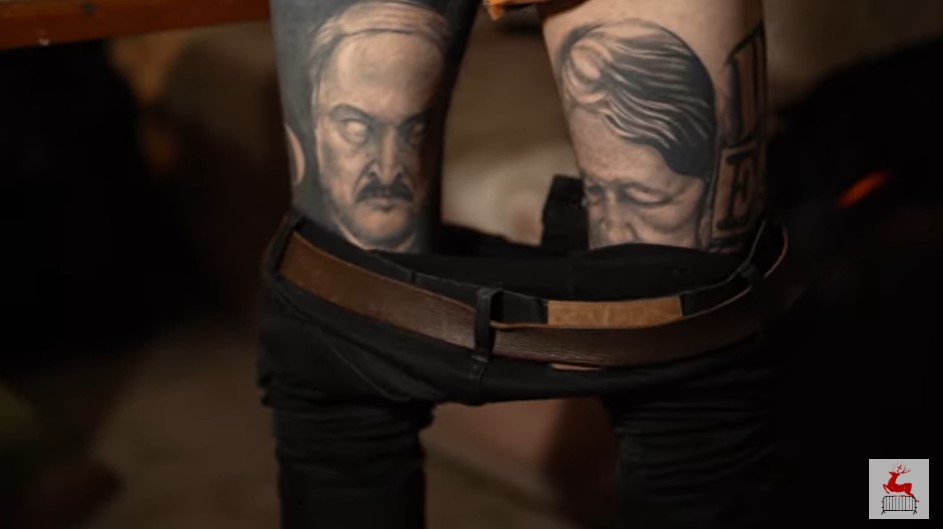 Надпись Павел сделал в 2009 году, портрет — в 2018. «Только в их испорченной реальности эти татуировки можно воспринимать как оскорбление президента. Я понимал, в какой стране я живу и что делаю — поэтому они на грани, — рассказал парень. — Я мог бы не бежать из Беларуси, а просто «забить» татуировки и не было бы дела никакого. Меня следователь предупреждал: «Смотри, встретит тебя ГУБОПиК на выходе из тюрьме и вменит публичную демонстрацию в тюрьме, где ты находишься в общей камере, где ты вынужден совершать преступление с их точки зрения».