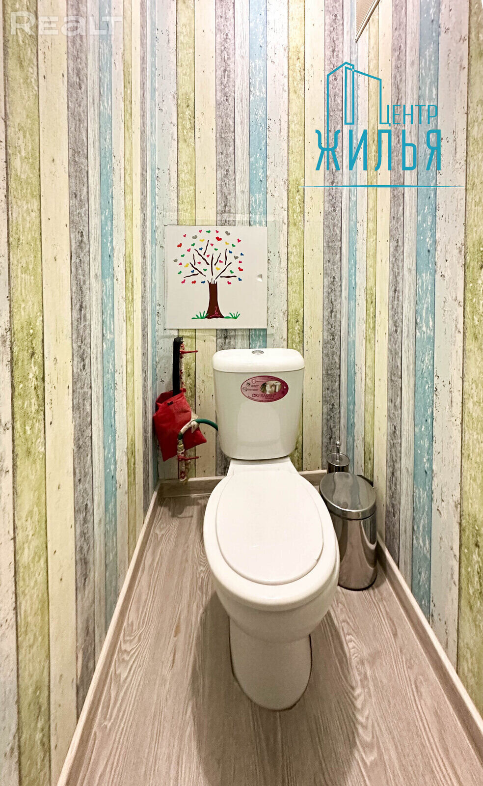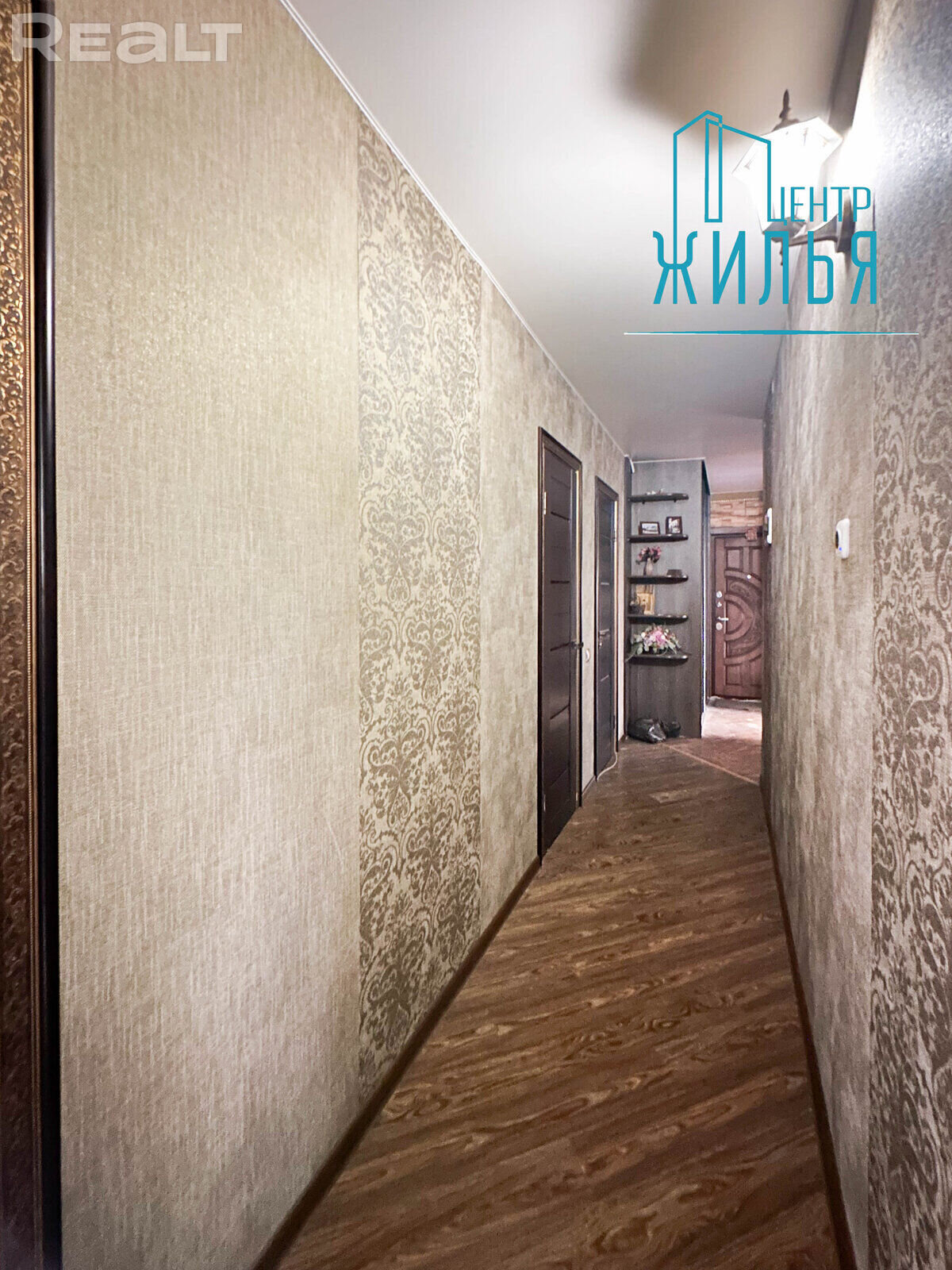 В квартире выполнен ремонт. Общая площадь — 81 м.кв. Кухня соединена с залом. Наружные двери — двойные деревянные. Полы — ламинат в жилых комнатах и в коридоре и плитка на кухне и ванной комнате. На стенах — жидкие обои в спокойных тонах.