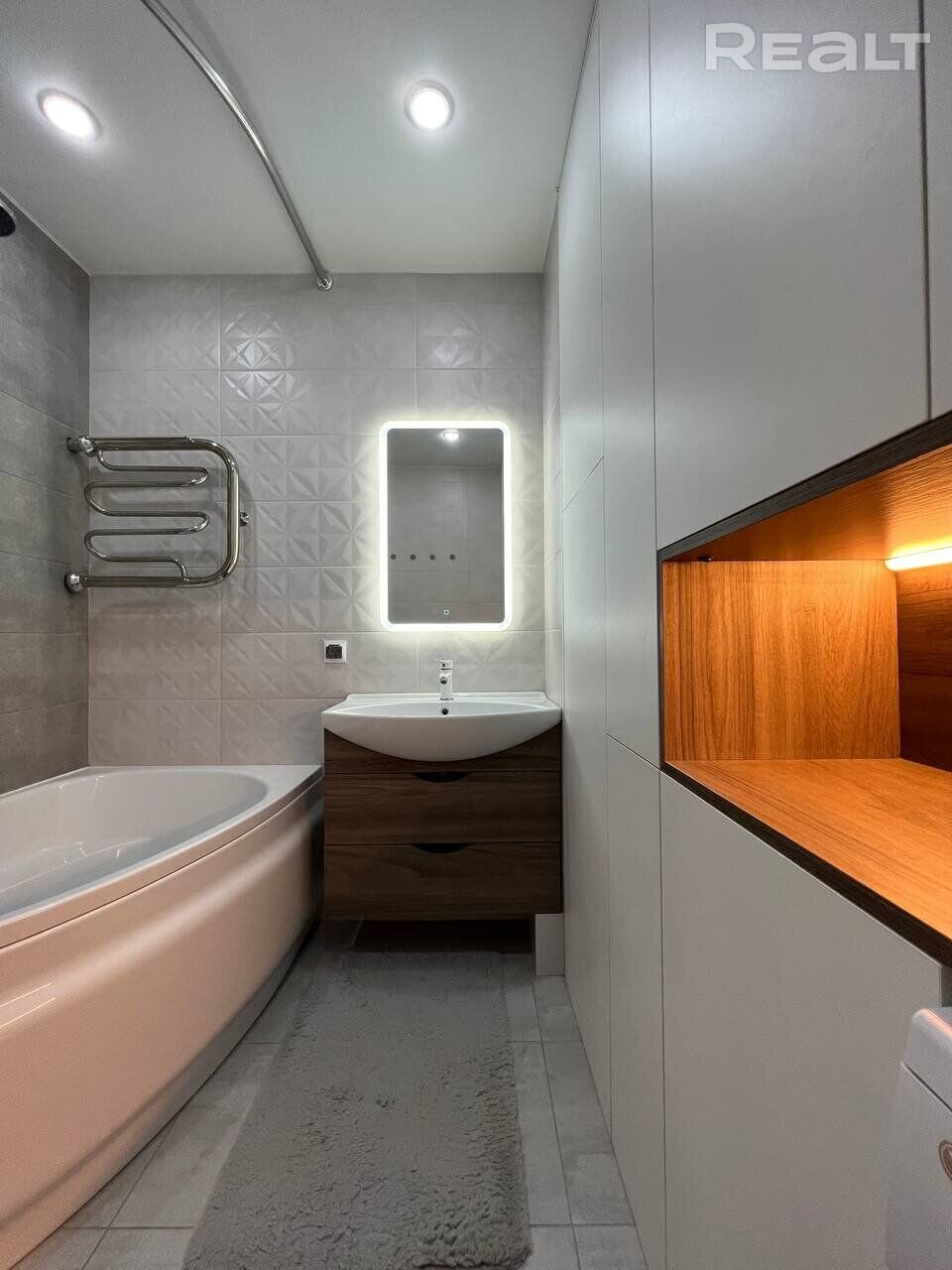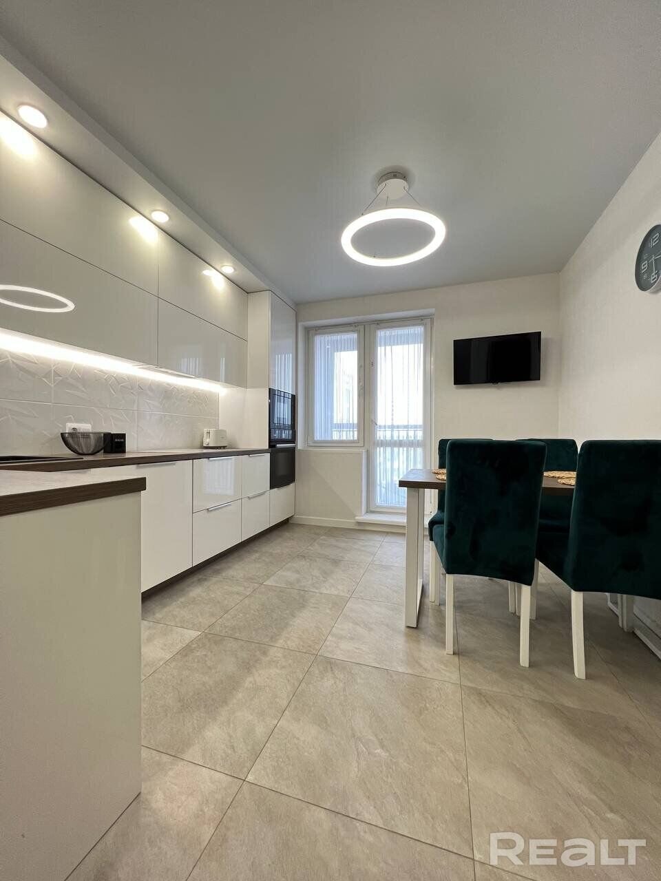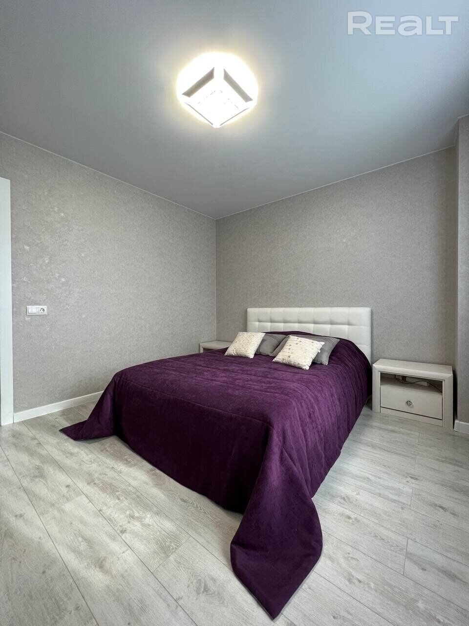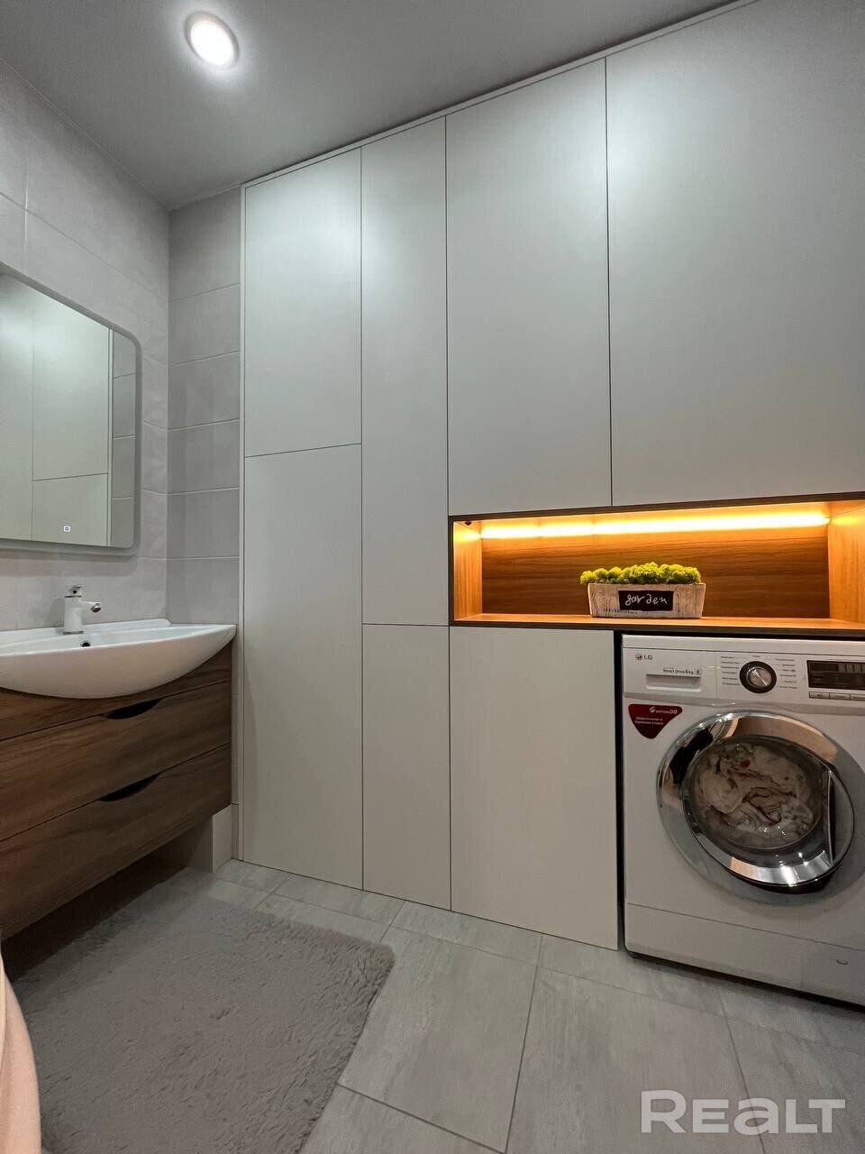 Двухкомнатная квартира по ул. Суворова, 306 в ЖК «Колбасино» продается в Гродно. В квартире — ремонт в светлых тонах с общей концепцией по всей площади. В интерьере — много подсветки и дерева.