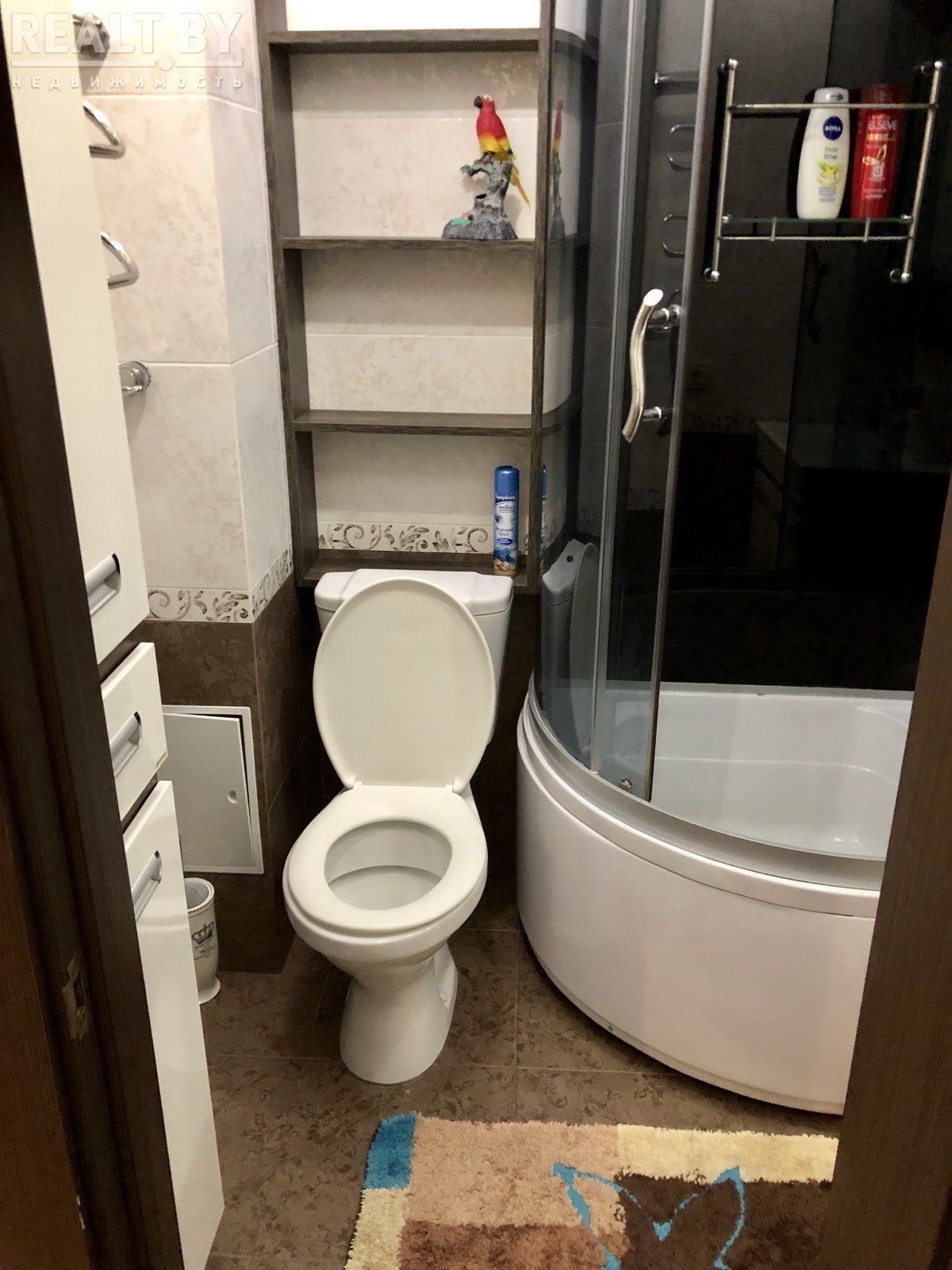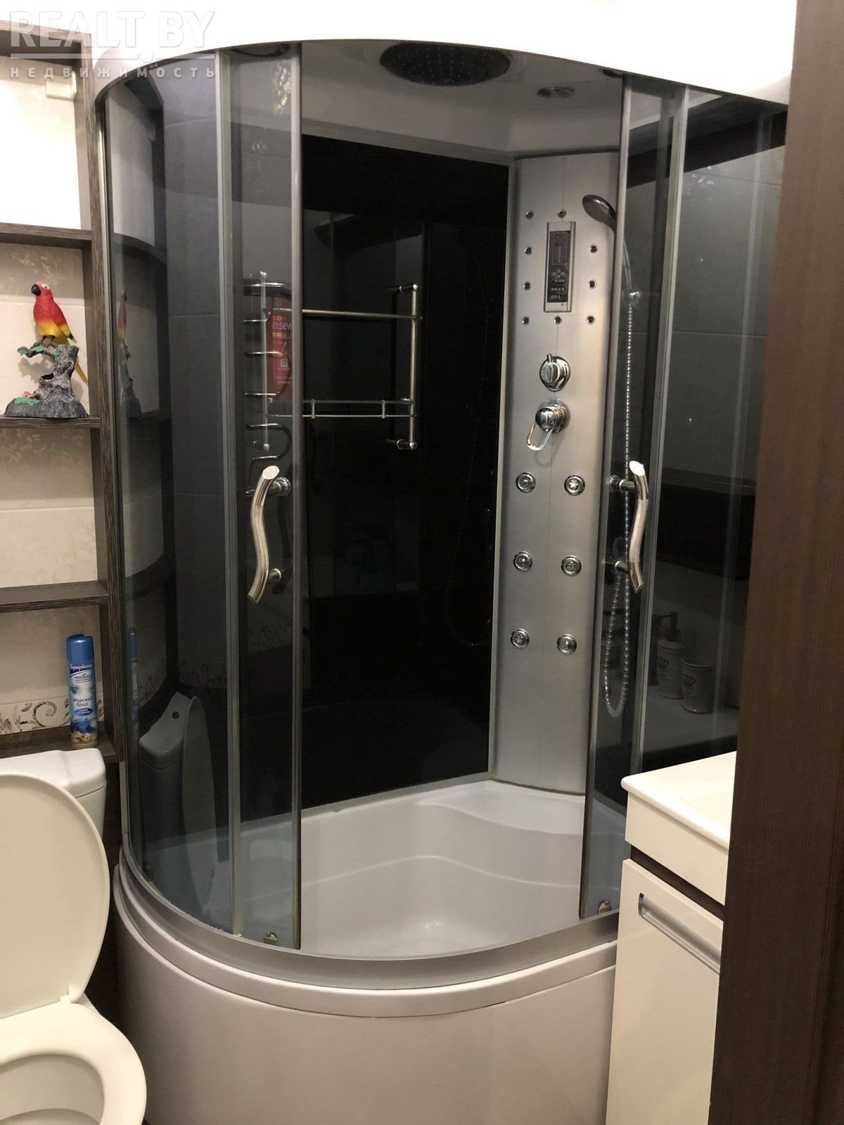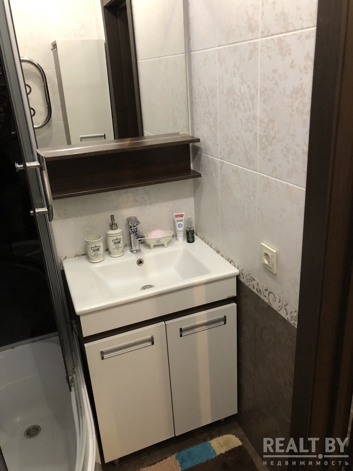Общая площадь квартиры — 35,4 м². Она расположена на восьмом этаже 12-этажки 1986 года постройки. Санузел — совмещенный, там есть душ. Есть лоджия — ее совместили с жилой комнатой для увеличения пространства.